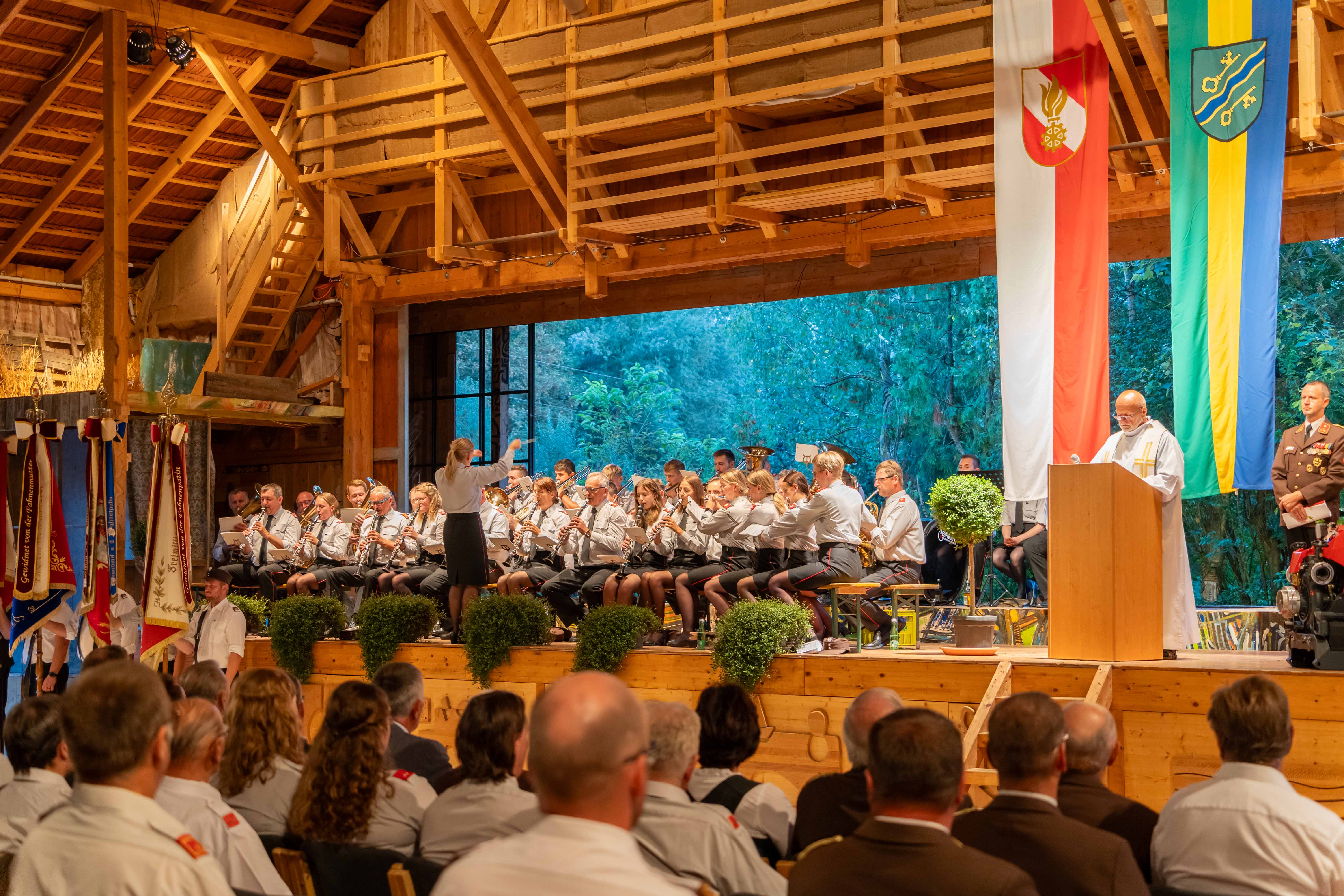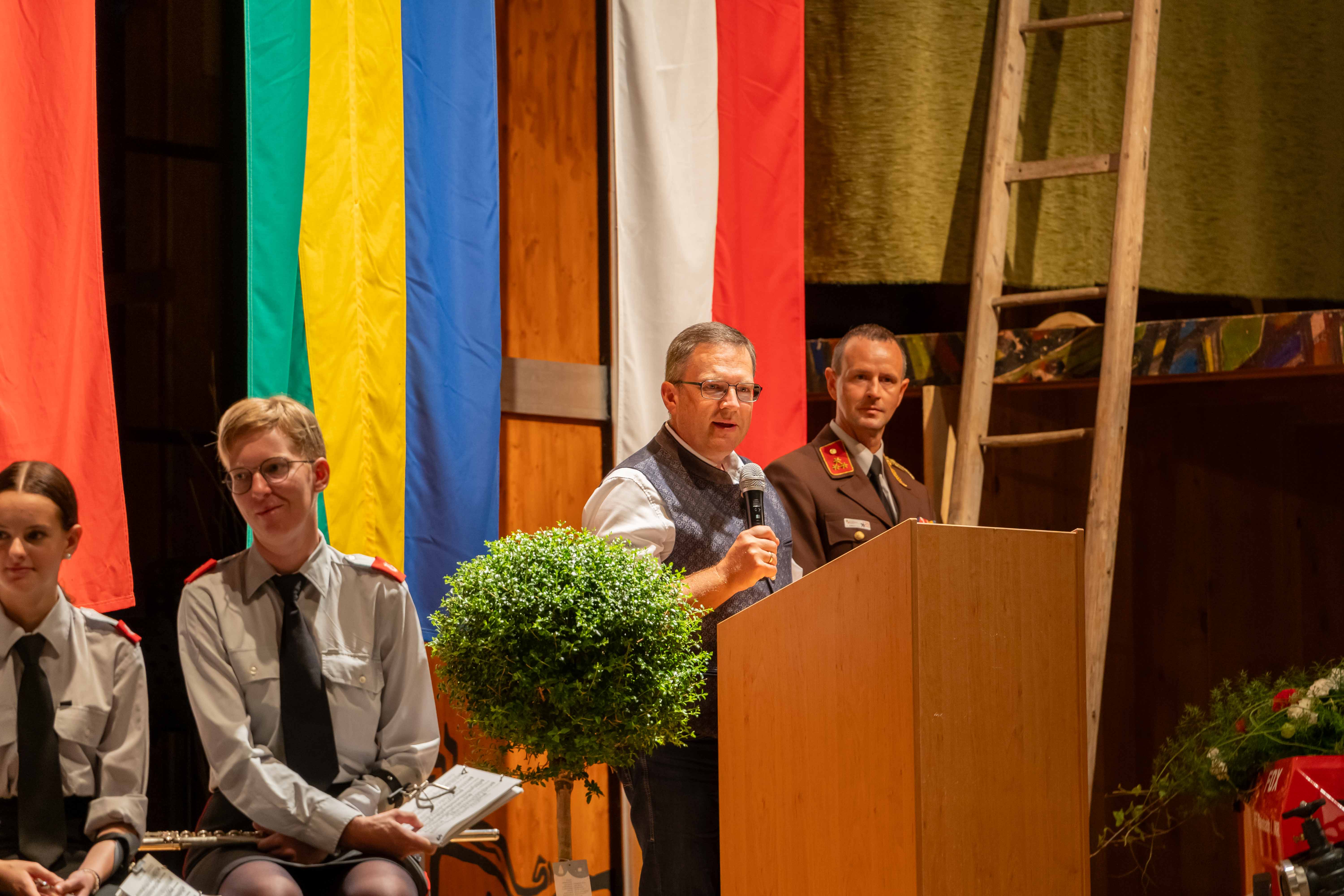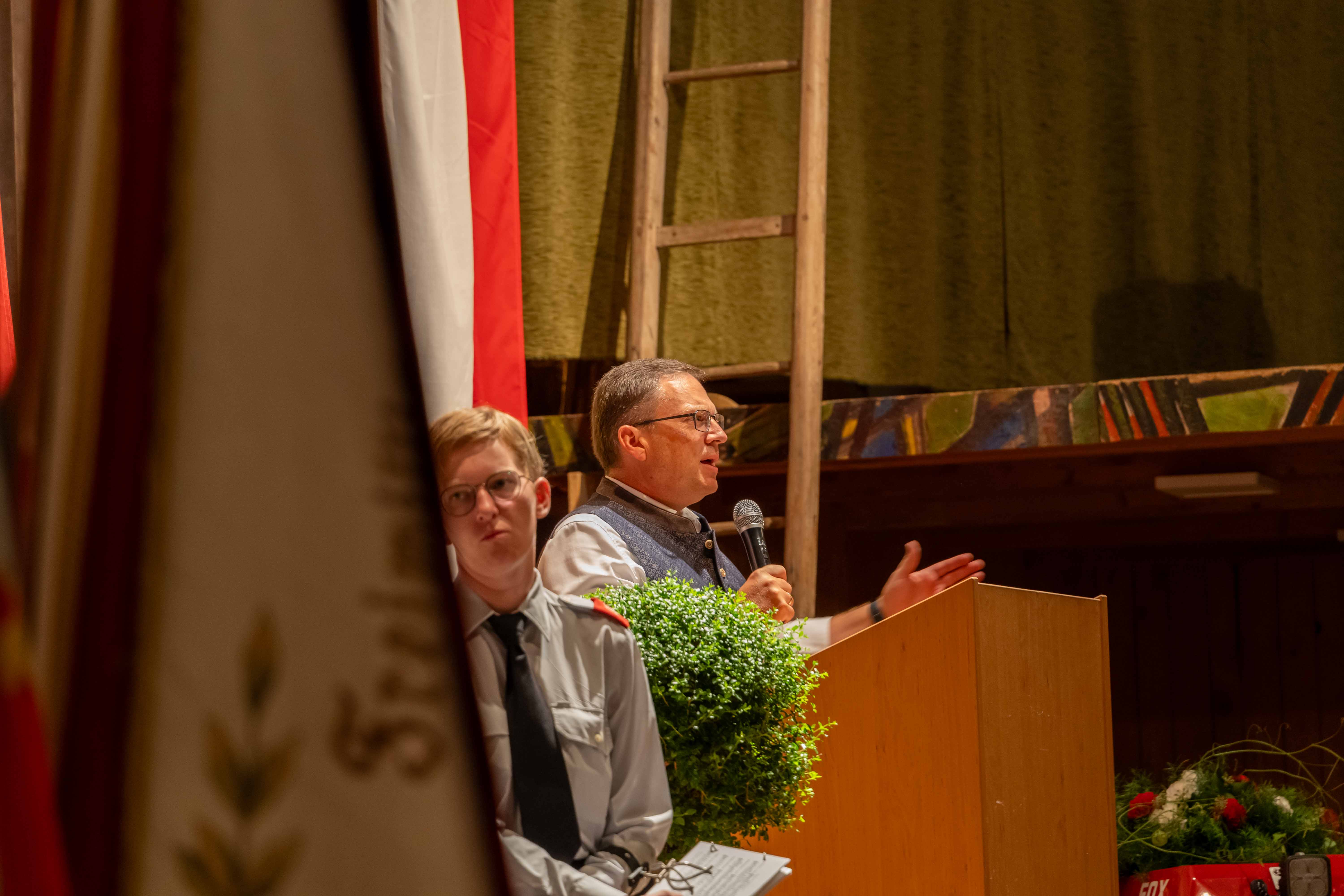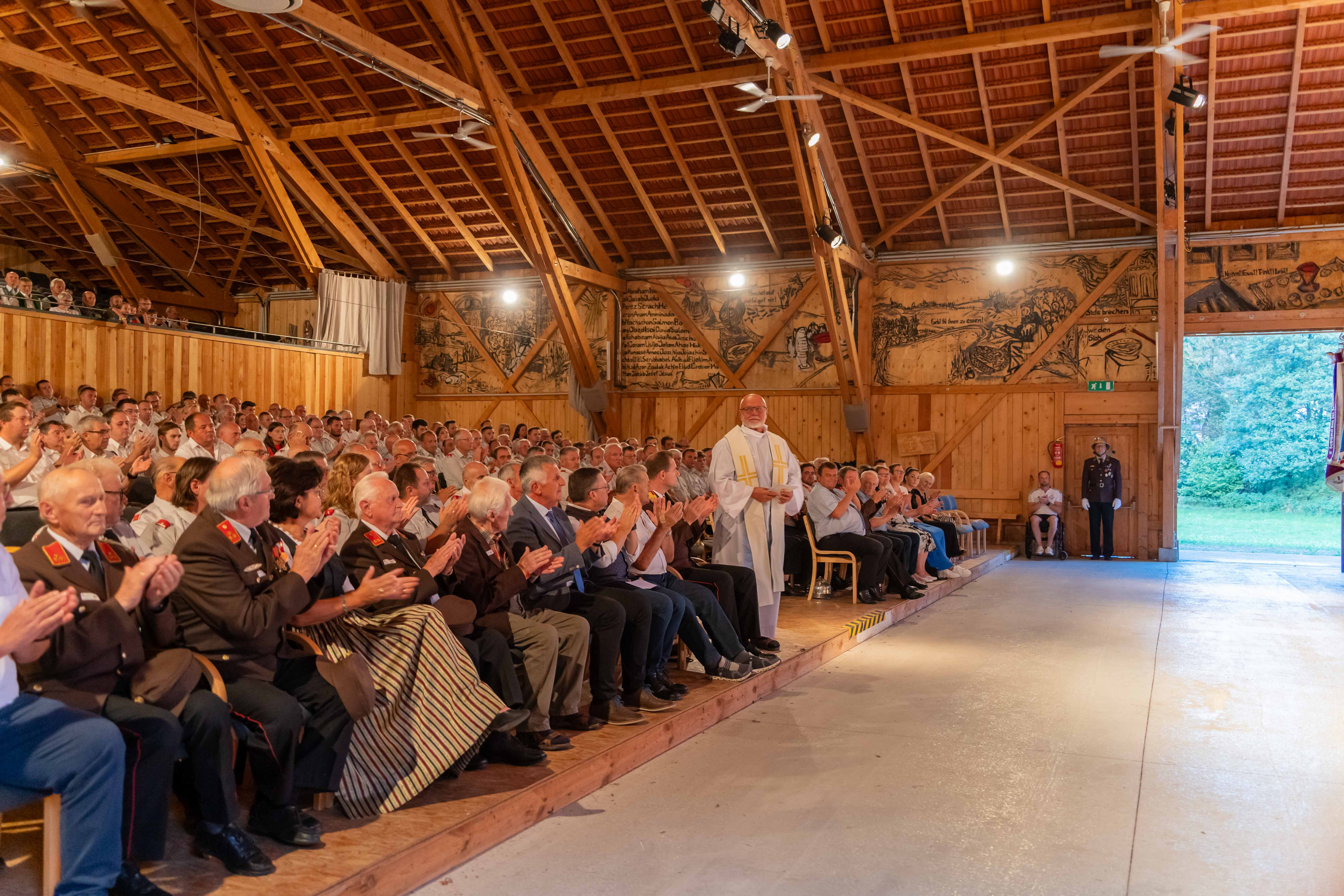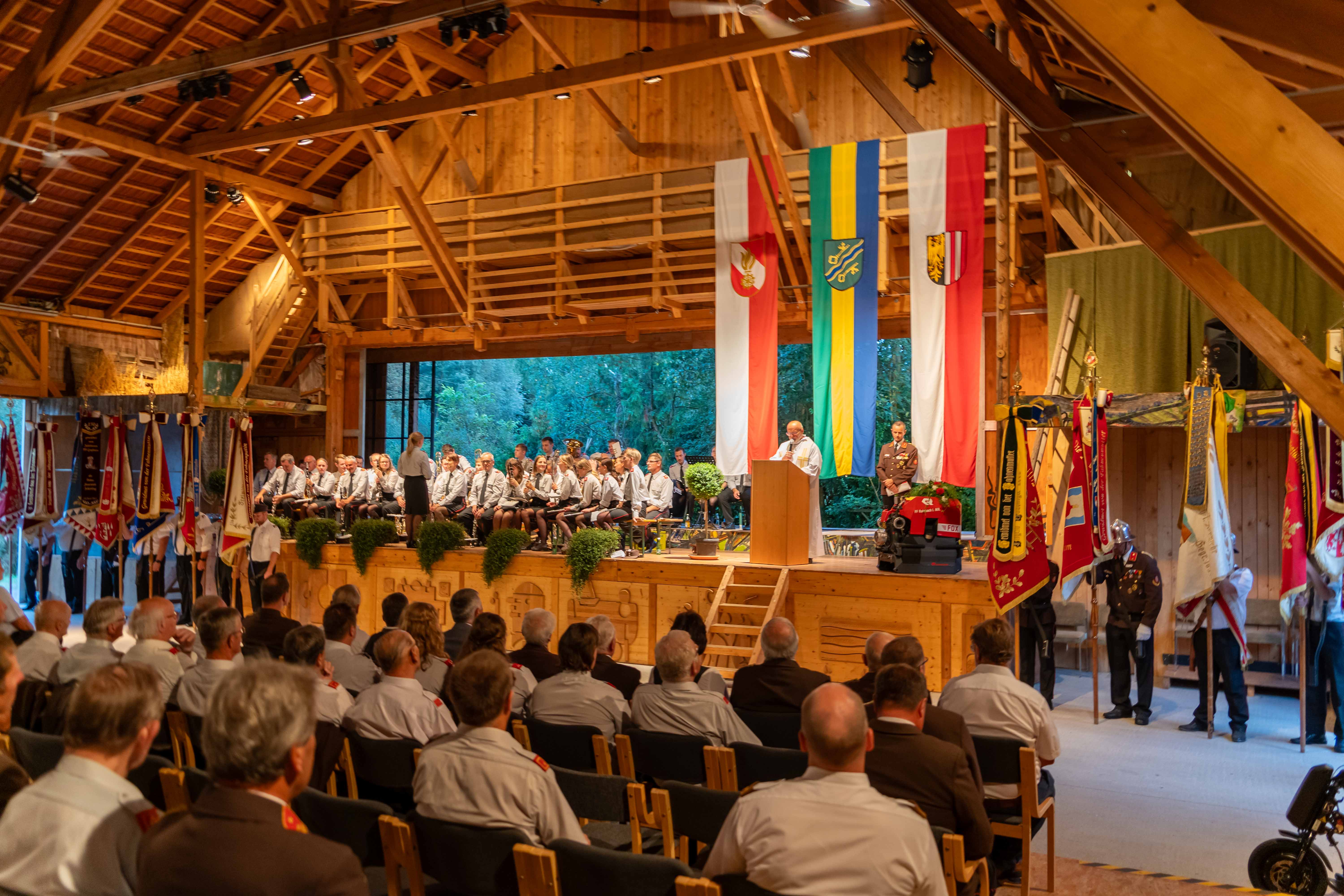 Wie jedes Jahr fand am ersten Septemberwochenende der Frühschoppen der Feuerwehr statt, dieses Mal im Jahr 2024 mit einem besonderen Highlight. Zusammen mit den 14 Feuerwehren der Alarmstufe 3, der Partnerfeuerwehr aus Rainbach im Mühlkreis und der Musikkapelle zog der Festzug zum Rainbacher Theaterstadl, wo die Segnung der neuen Tragkraftspritze stattfand.