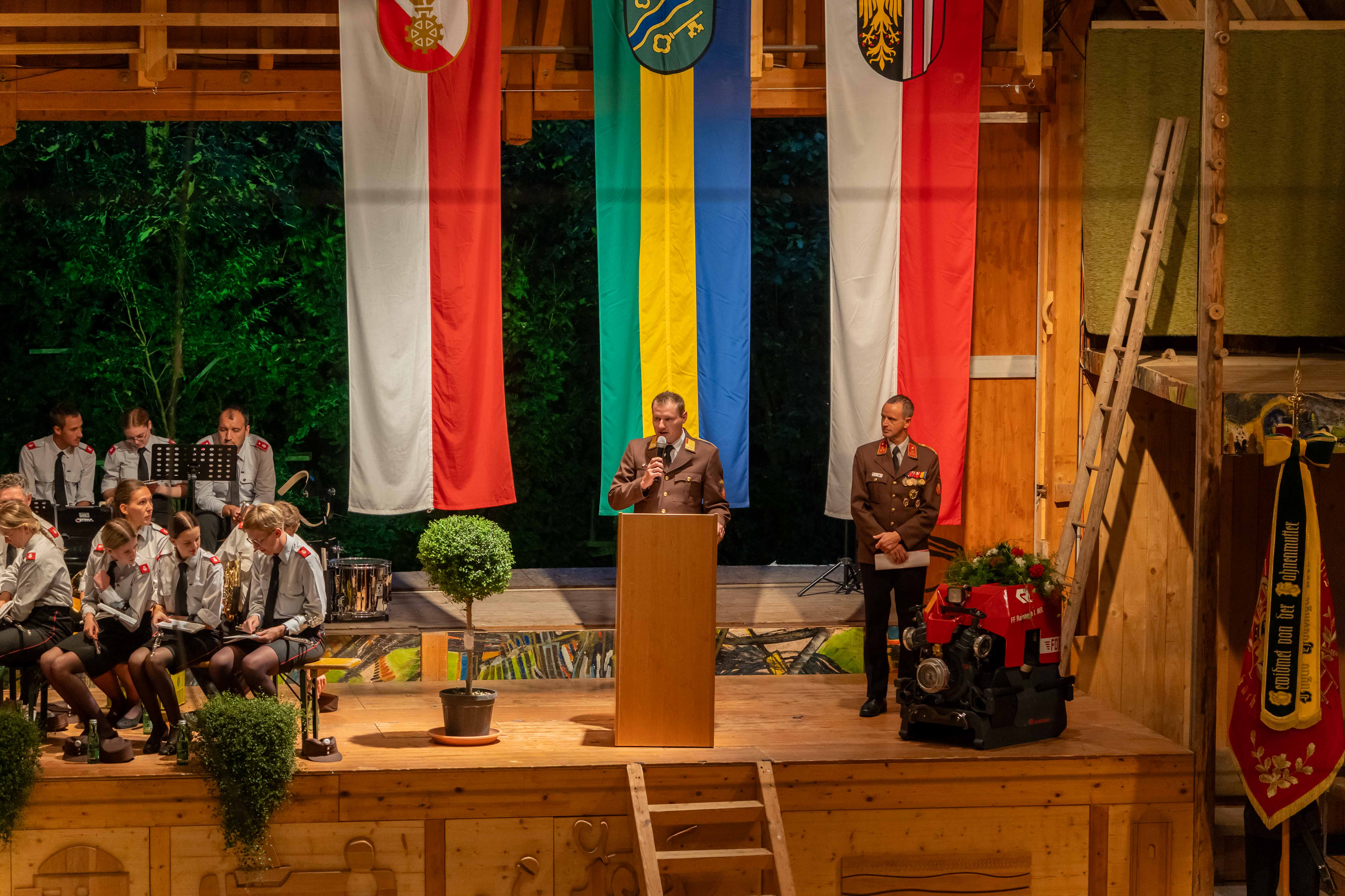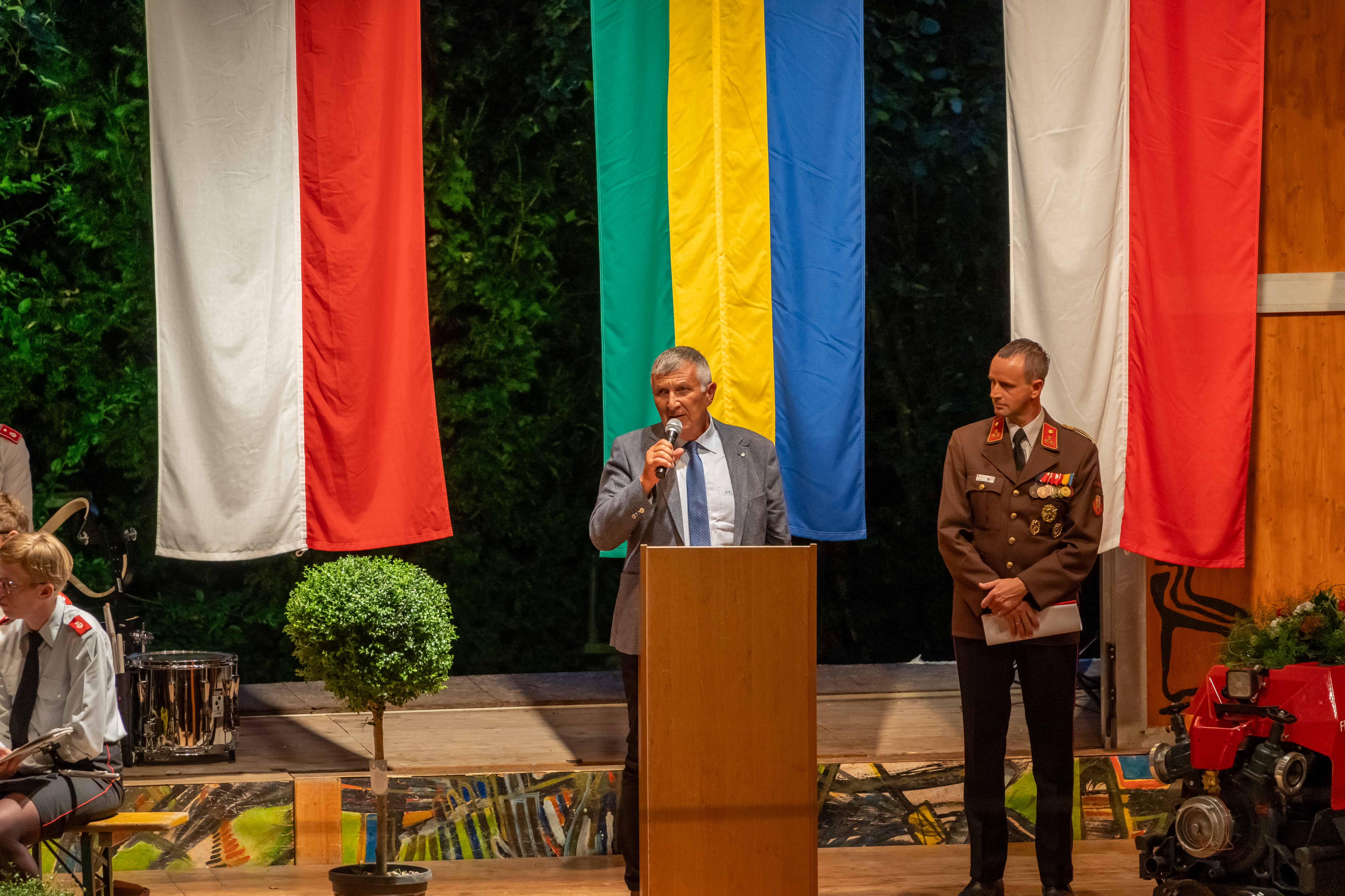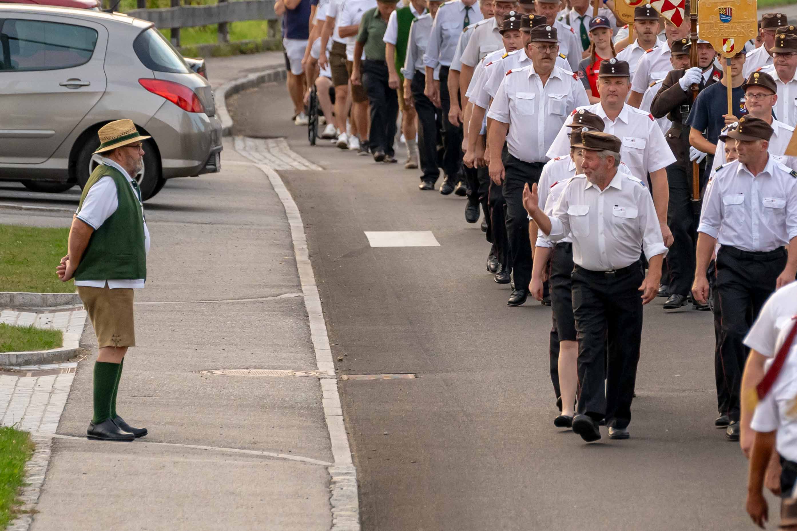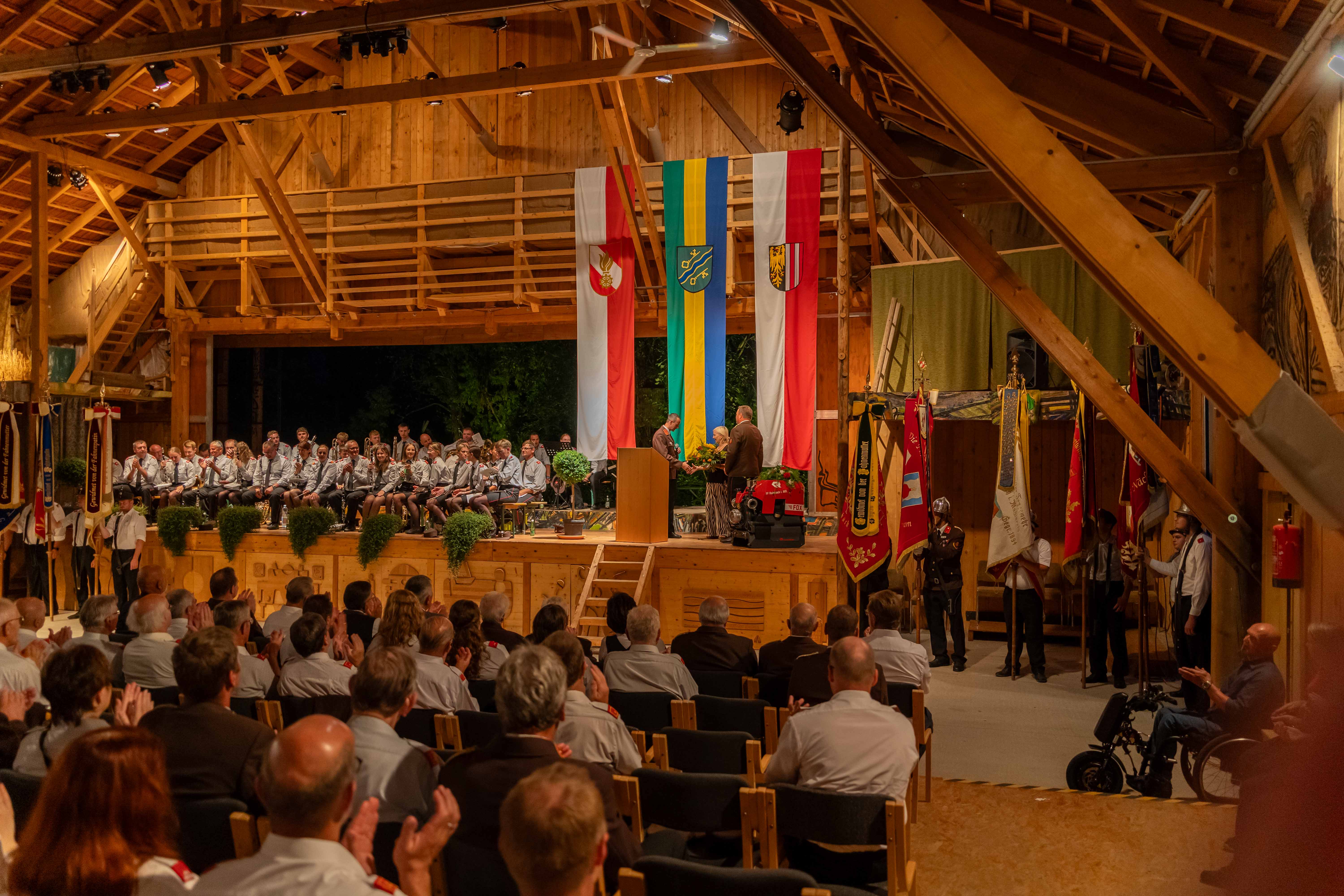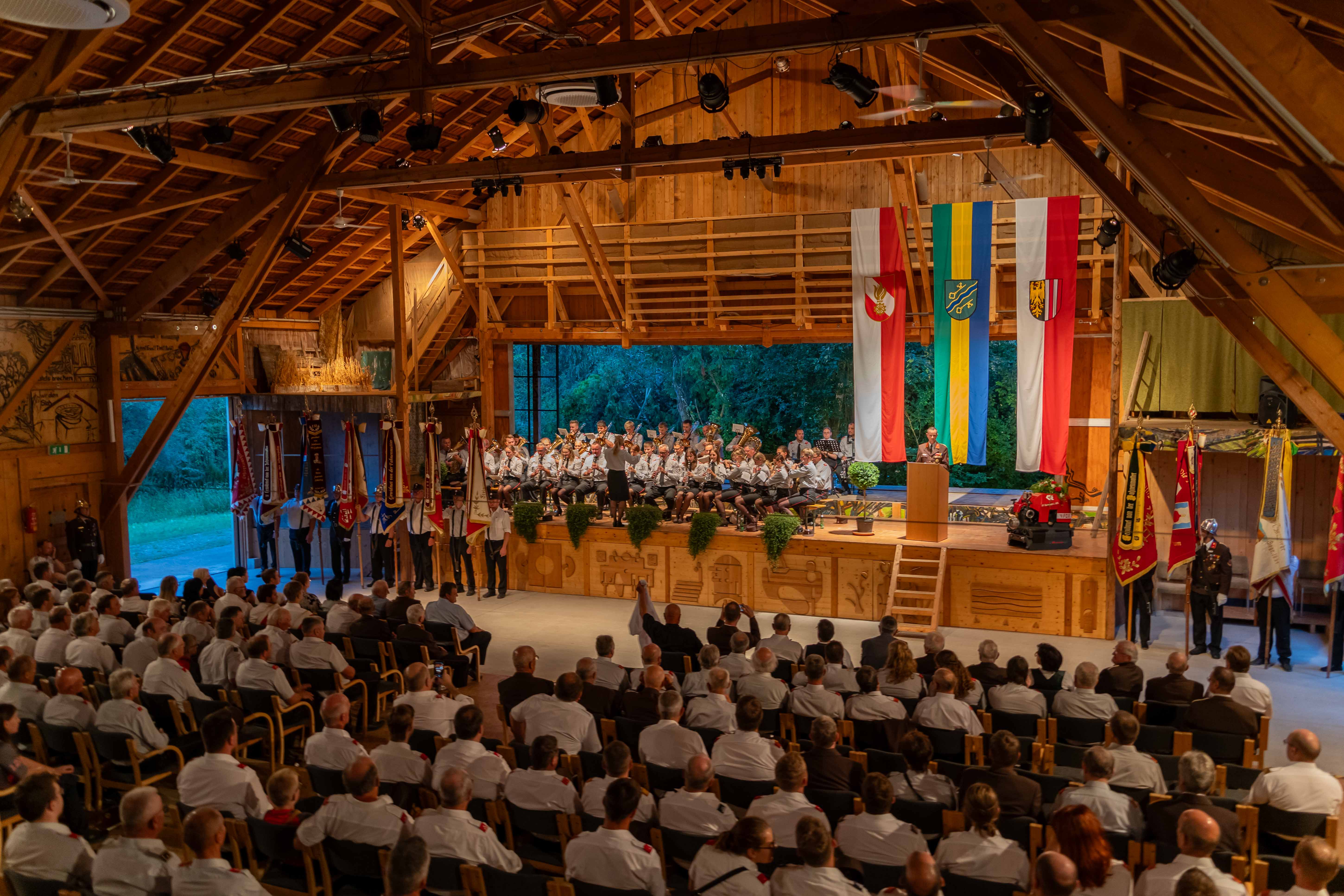 Wie jedes Jahr fand am ersten Septemberwochenende der Frühschoppen der Feuerwehr statt, dieses Mal im Jahr 2024 mit einem besonderen Highlight. Zusammen mit den 14 Feuerwehren der Alarmstufe 3, der Partnerfeuerwehr aus Rainbach im Mühlkreis und der Musikkapelle zog der Festzug zum Rainbacher Theaterstadl, wo die Segnung der neuen Tragkraftspritze stattfand.