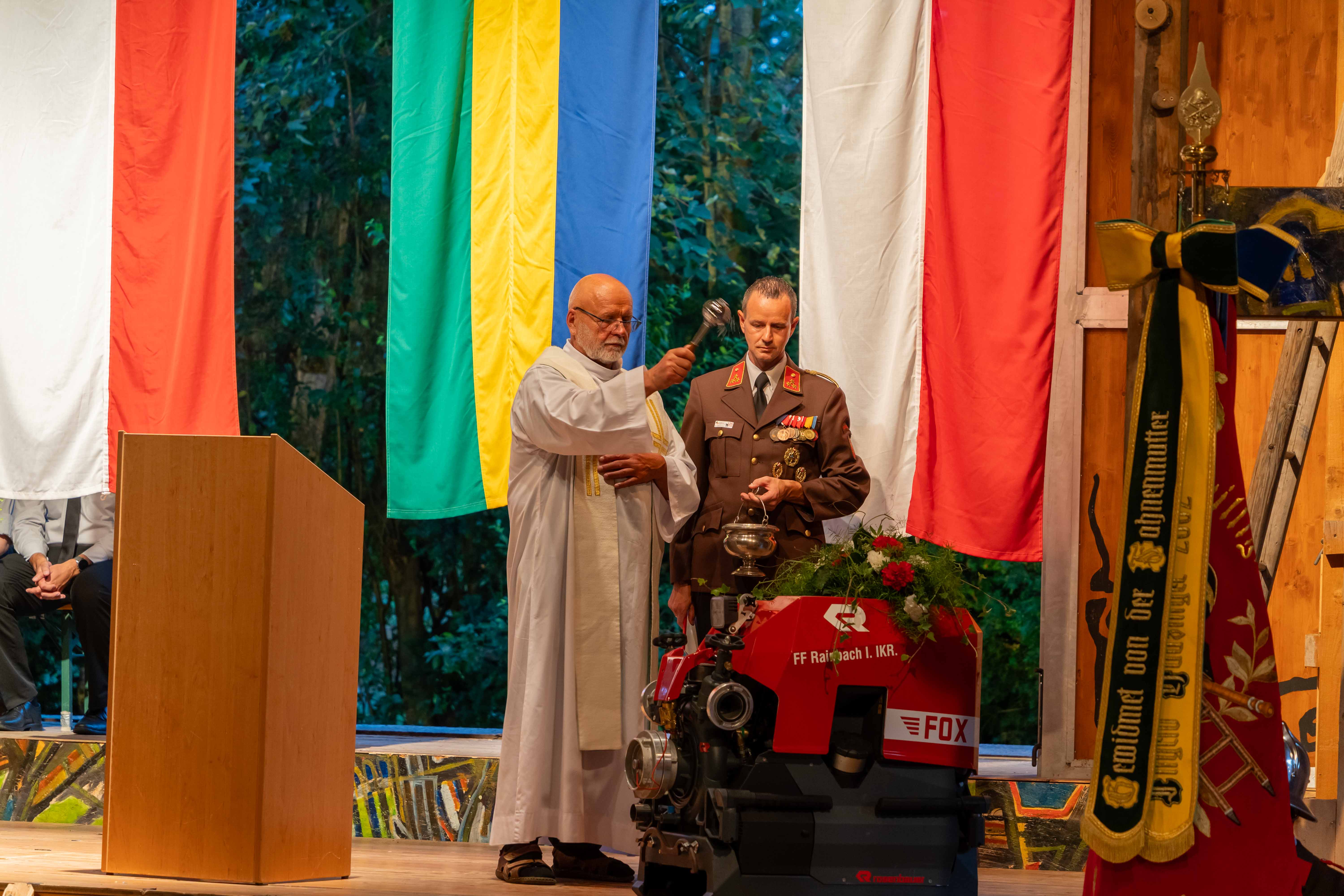 Mit der heutigen Segnung der Tragkraftspritze FOX-4 der Firma Rosenbauer wird dieser Weg fortgesetzt. Diese hochmoderne TS wird der Feuerwehr in zukünftigen Einsätzen wertvolle Dienste leisten und die Einsatzfähigkeit weiter verbessern.