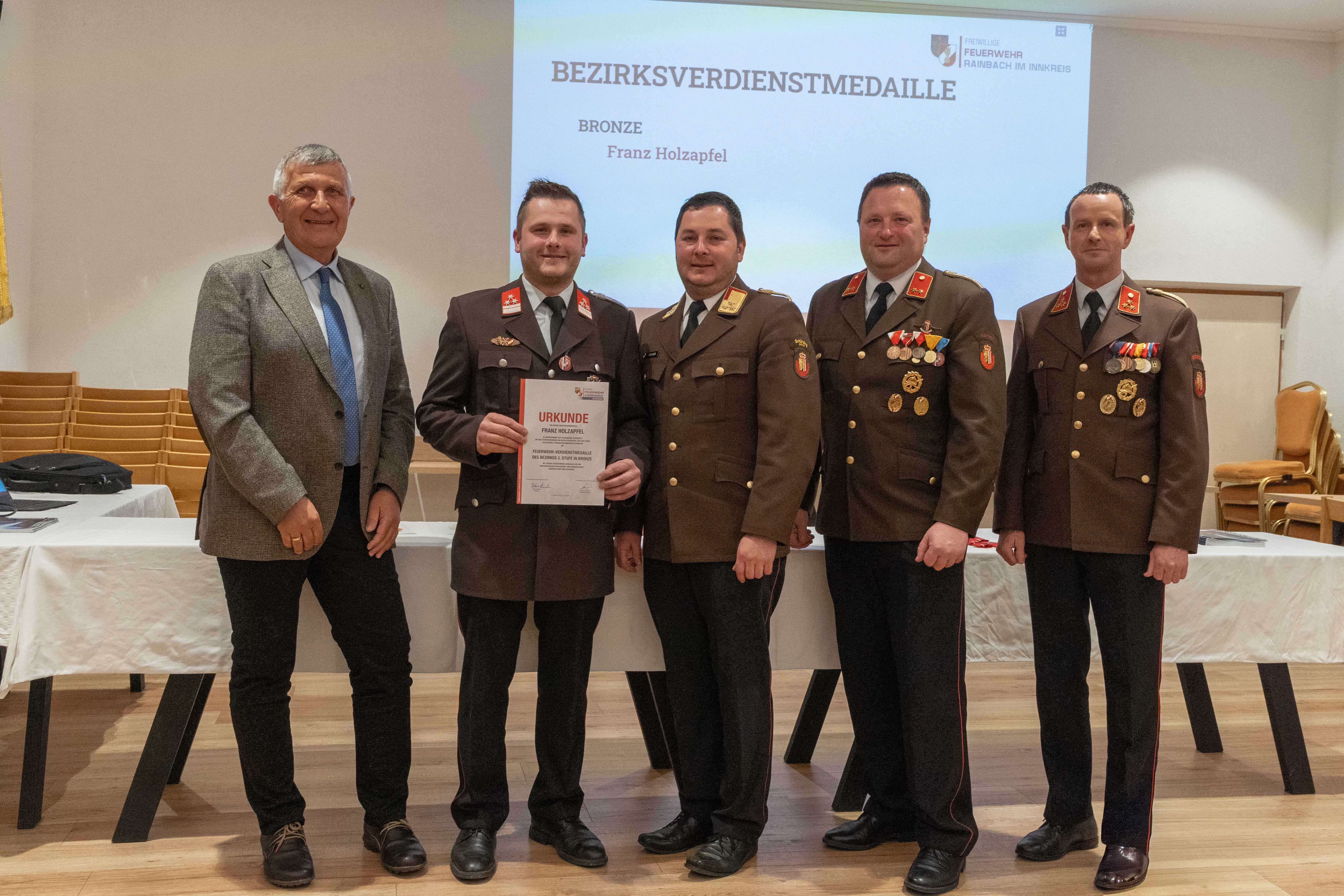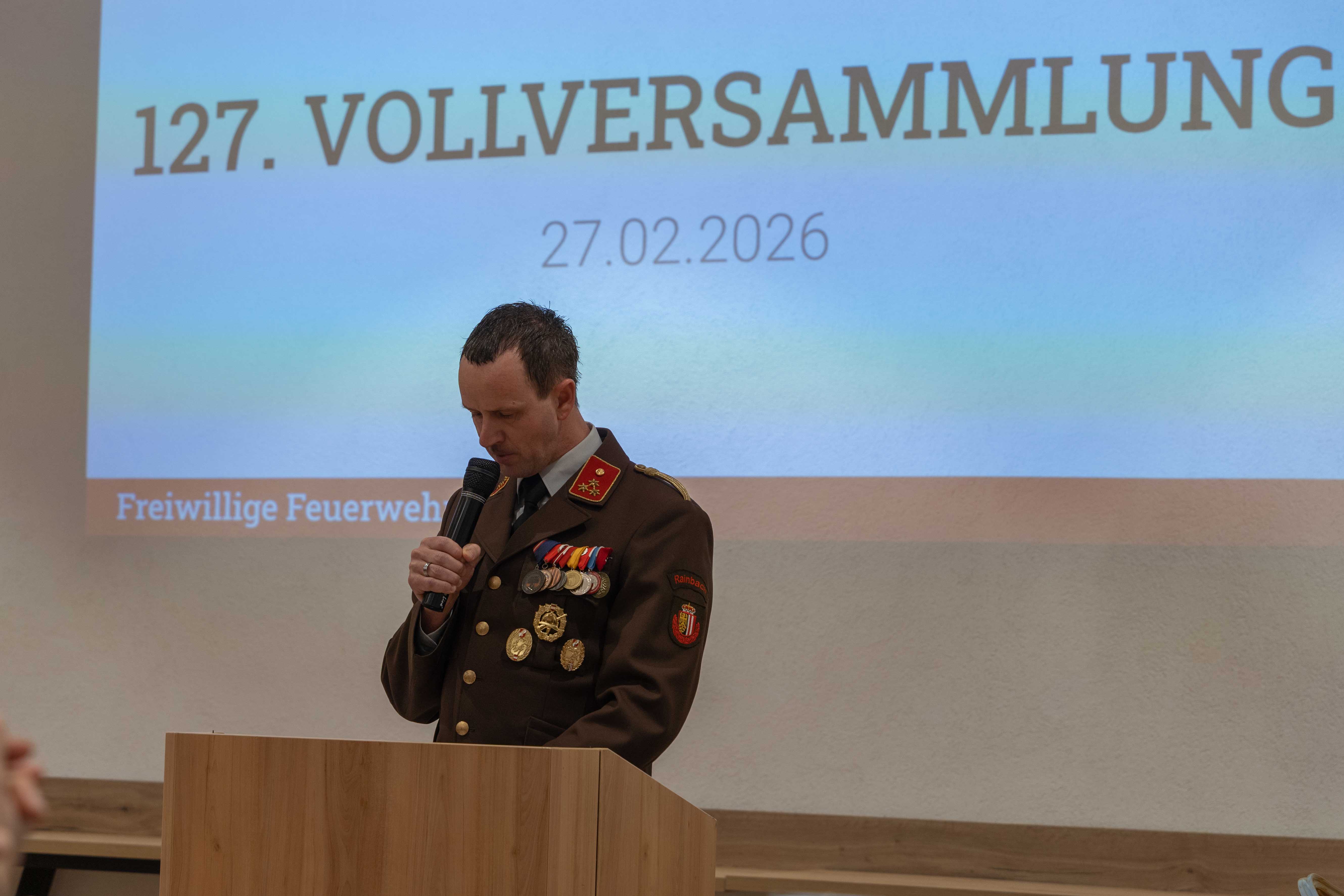 Die 127. Vollversammlung wurde am 27. Februar im Saal des Kirchenwirt Rainbach abgehalten. Nach dem offiziellen Teil mit den Ansprachen der Funktionäre und Ehrengäste würdigte HBI Josef Gattermann das Engagement der Mitglieder und nahm dabei zehn Ehrungen sowie sechs Beförderungen vor.