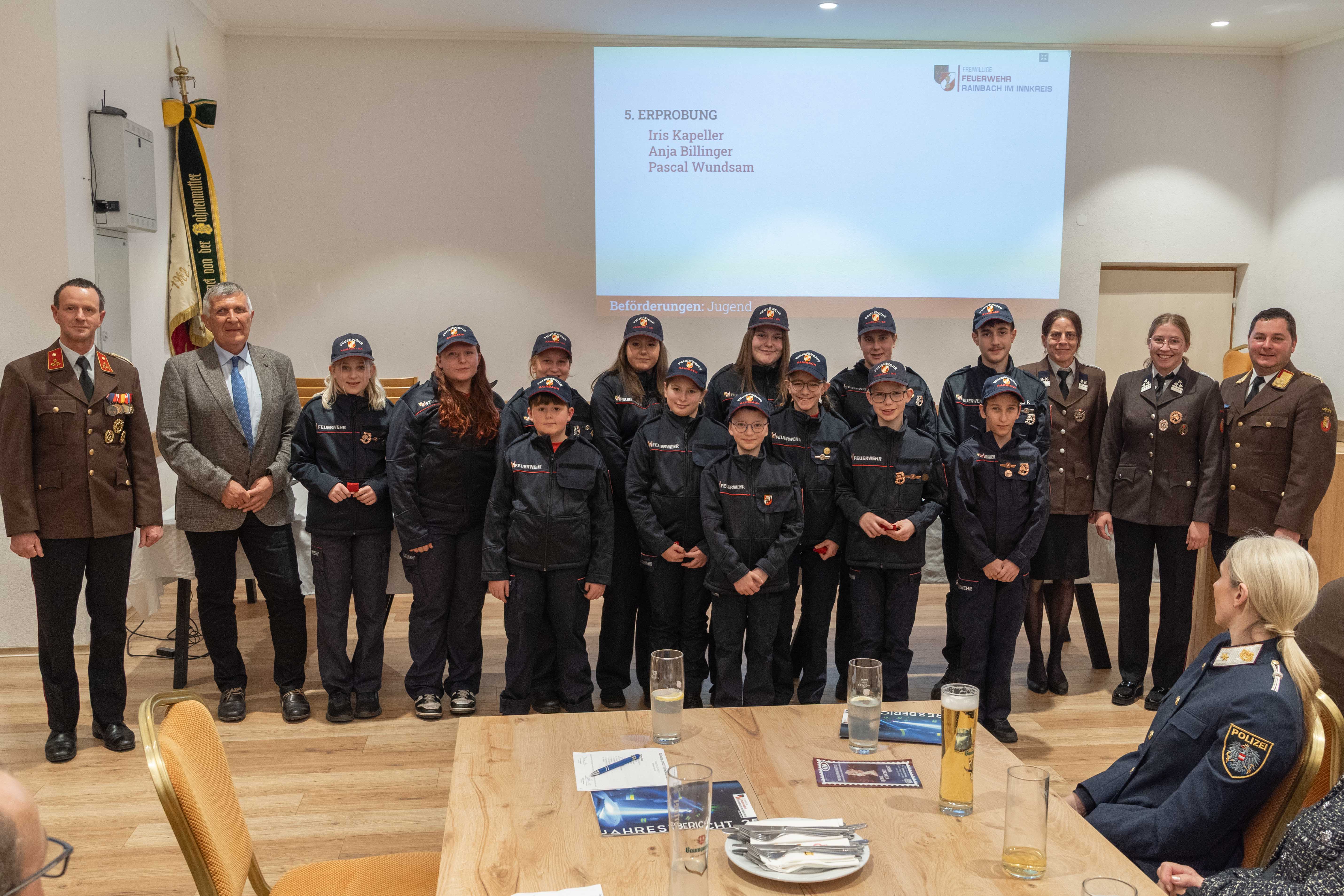 Im Rahmen der Feuerwehrjugend wurden 16 Jugendmitgliedern die Erprobung in Form eines neuen Dienstgrades überreicht. Darüber hinaus wurde ein weiteres Jugendmitglied angelobt sowie drei neue Mitglieder in den Aktivstand befördert.