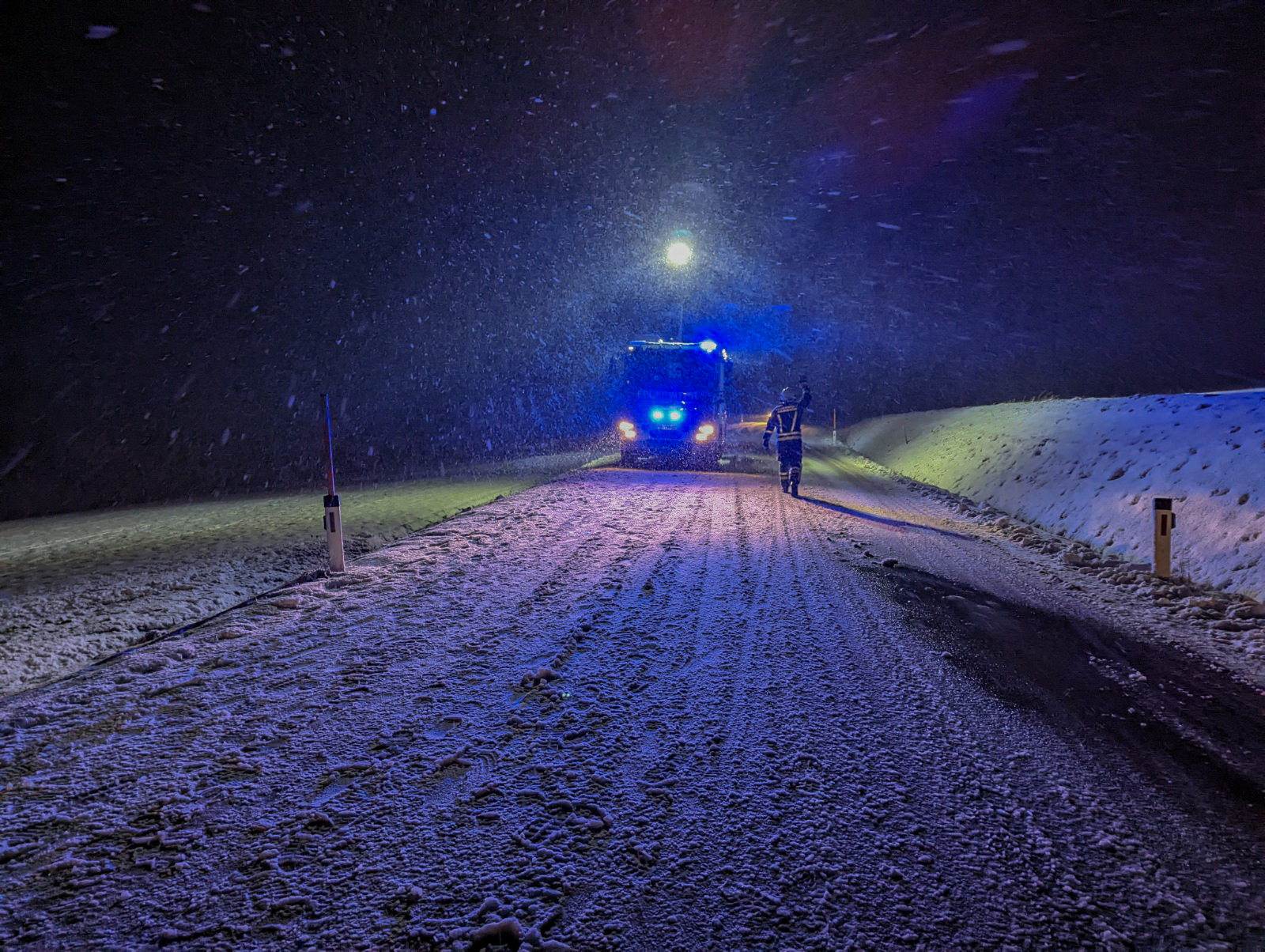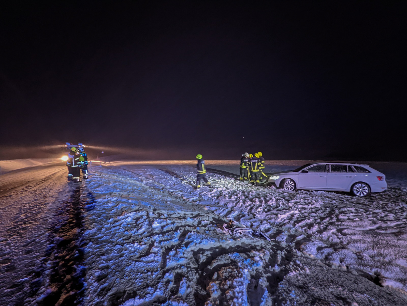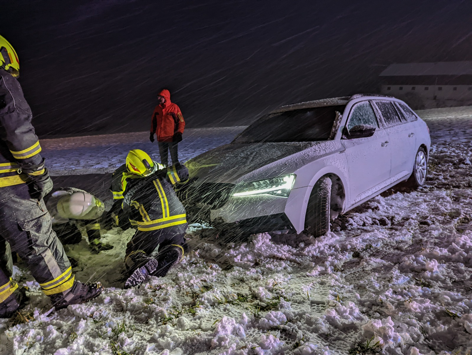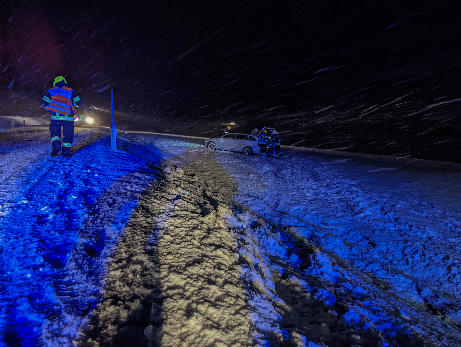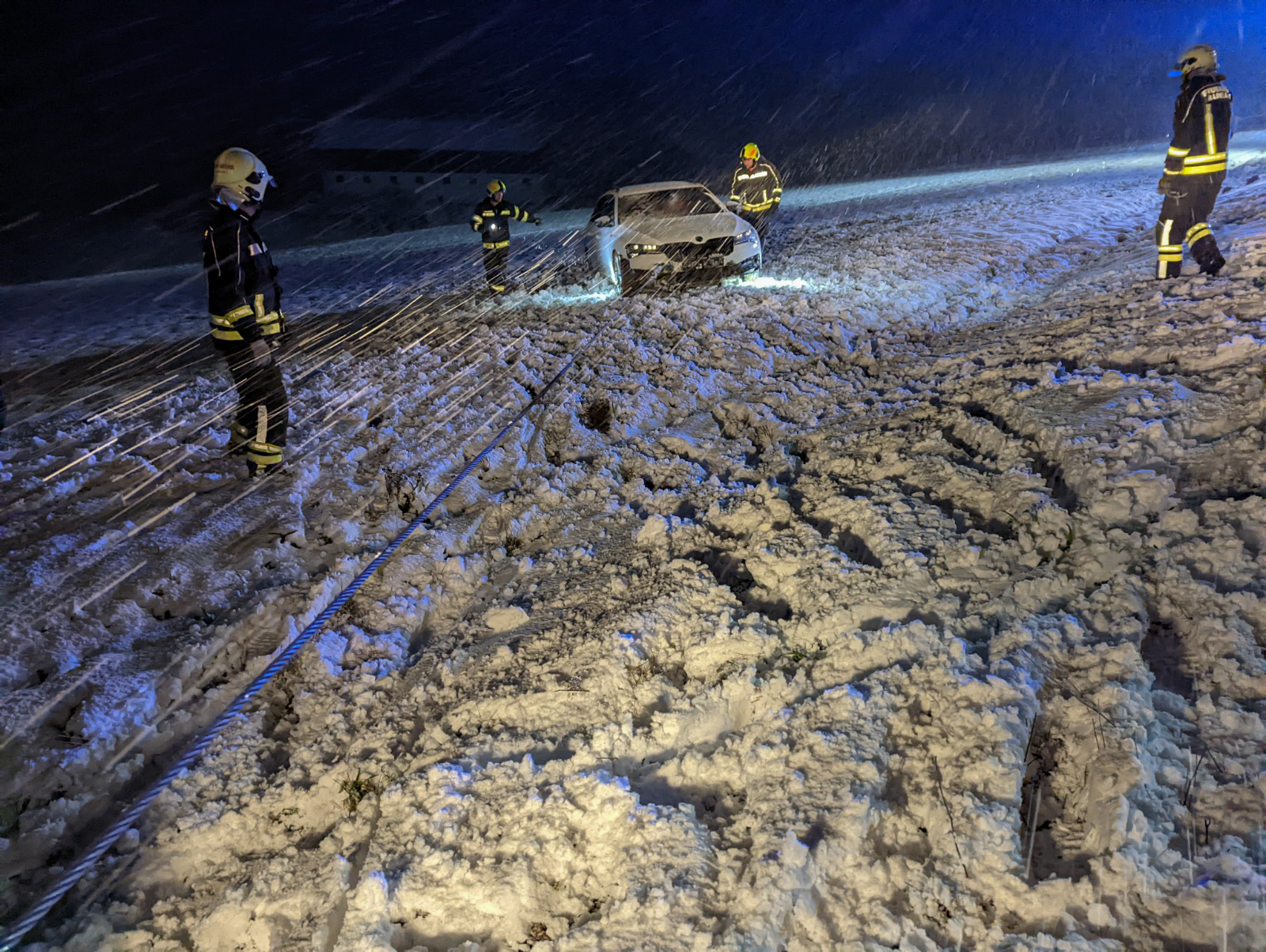 Erste Schneefälle: Erfolgreiche PKW-Bergung auf der Eisenbirner Bundesstraße